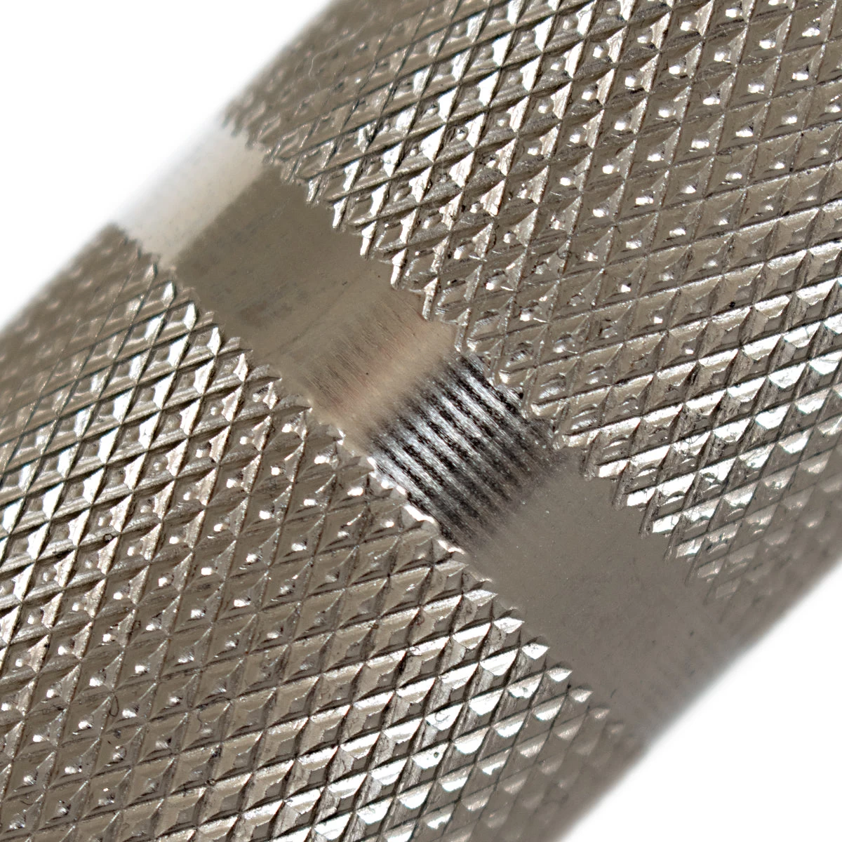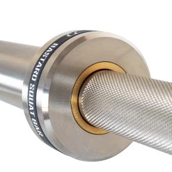 Die tiefe und grobe Rändelung gibt der Stange in der Hand und in der Ablage einen guten Grip. Zur einfachen Orientierung ist die Hantelstange mit Markierungen bei 81cm, 43cm und einer in der Markierung Mitte versehen. Mit einer Gesamtlänge von 233cm ist diese Bastard Squat Bar kürzer als unsere 32mm Bastard Squat Bar, hat aber das gleiche stabile Leergewicht von 25kg. Die Länge der beladbaren Scheibenaufnahme beträgt 43cm und kann mit bis zu 450kg belastet werden.