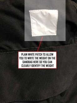 The sandbags come in 9 different sizes and should be filled to the desired weight accordingly.