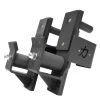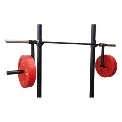 Die Klimmzugstange kann an der Rückseite des Racks verstaut werden, um Platz zu schaffen für alle anderen Übungen. An den Steckvorrichtungen zur Aufbewahrung von Hantelscheiben können die Scheiben schnell und praktisch verstaut werden. Sie erlauben außerdem ein schnelles Laden der Hantel und ein Wechsel der Gewichte.
