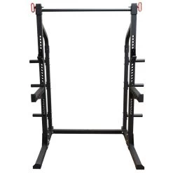Im Lieferumfang enthalten sind Catchers/Sicherheitsstreben und Hantelablagen für schweres Kniebeugentraining und Pressübungen sowie eine abnehmbare Klimmzustange für das Oberkörpertraining.
