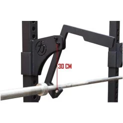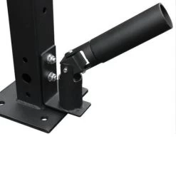 Entferne die sechs Stifte und das wandmontierte Rack kann zu Wand hin eingeklappt aufbewahrt werden. Dort nimmt es nur wenig Platz ein. Egal, ob man Platz für andere Trainingsroutinen benötigt oder mit dem Training fertig ist und sein Gym einfach gerne aufgeräumt hat, das 2,32m hohe faltbare Rack mit Klimmzugstange ist schnell und diskret aus dem Weg geräumt. Der untere Querbalken ist in der Höhe verstellbar. Minimum 10cm vom Boden, maximal 38cm vom Boden.