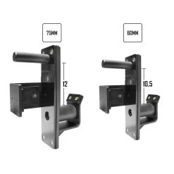 Die zwei verschiedenen Größen passen je auf die entsprechende Pfostenstärke. Die 60mm J-Hooks passen auf alle unsere 60mm x 60mm und die 75mm J-Hooks passen auf alle unsere 75mm x 75mm Rigs und Cages. Der nach vorn gerichtete Bolzen sorgt für eine einfache Einstellung der gewünschten Höhe und die UHWM Platten schützen die Oberfläche der Racks und Rigs.