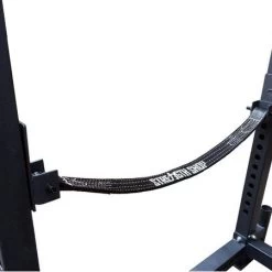 Der Sicherheitsgurt erlaubt eine weichere Landung und sichert die Langhantel bei einem Fehlversuch. Die Länge des Sicherheitsgurt ermöglicht es ihn in einen Winkel anzubringen, dass es möglich ist die Langhantel von sich wegzurollen bei einem Fehlversuch.
