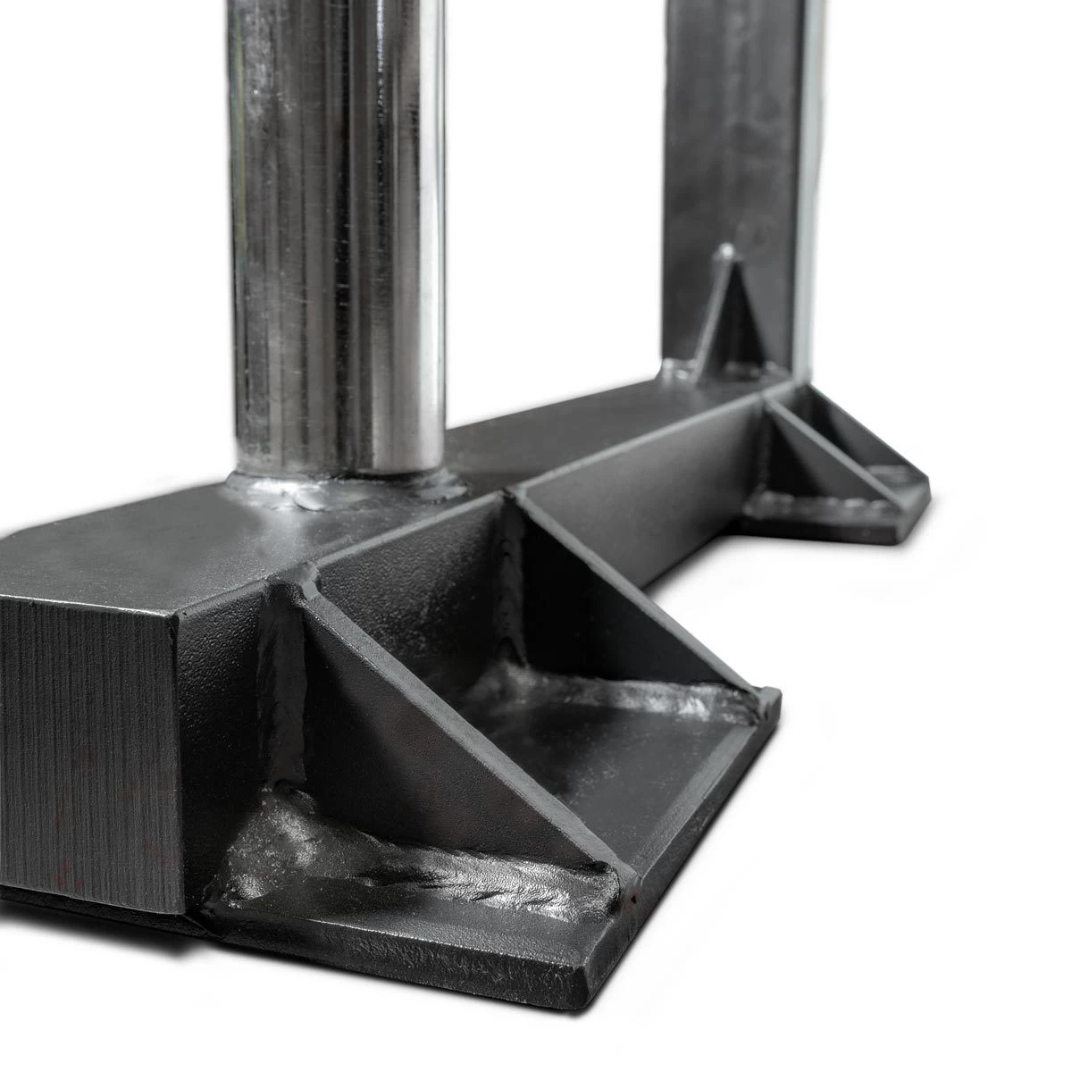 Der Lift ist heute ein fester Bestandteil vom Strongwoman/Strongman Sport. Mit den Aufsätzen für Langhantelstangen, kann man diesen Lift relativ einfach in sein Strong(wo)man-Training einbinden, ohne auf die klassischen aber auch recht sperrigen Metallboxen angewiesen zu sein. Das ist auch praktisch für alle Arten von Gyms, da die Aufsätze leicht zu befestigen, mit regulären Scheiben beladbar sind und nach dem Gebrauch platzsparend wieder verstaut werden können. Je ein Silver Dollar wiegt 29kg, so bringen beide Aufsätze ein Gewicht von 58kg auf die Waage. Diese massive Fertigungsweise sorgt für die extreme Belastbarkeit der Silver Dollar Attachments. Kleine Fußplatten geben außerdem Stabilität beim Stande der Aufsätze. Die Scheibenaufnahme ist geeignet für 50mm Hantelscheiben. Die Silberdollar-Aufsätze sind aus hochwertigem, sehr dickem Stahl mit einer matt-schwarzen Pulverbeschichtung und einer verchromten Scheibenaufnahme gefertigt.