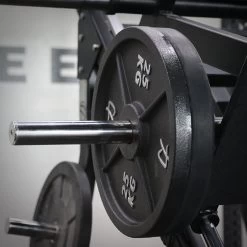 - Vier lange Ladestifte zur Aufnahme von Olympiaplatten (2″, 50 mm Lochdurchmesser)