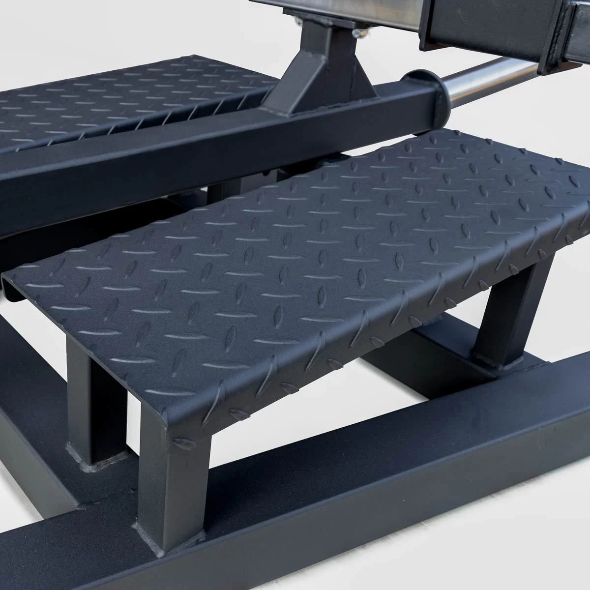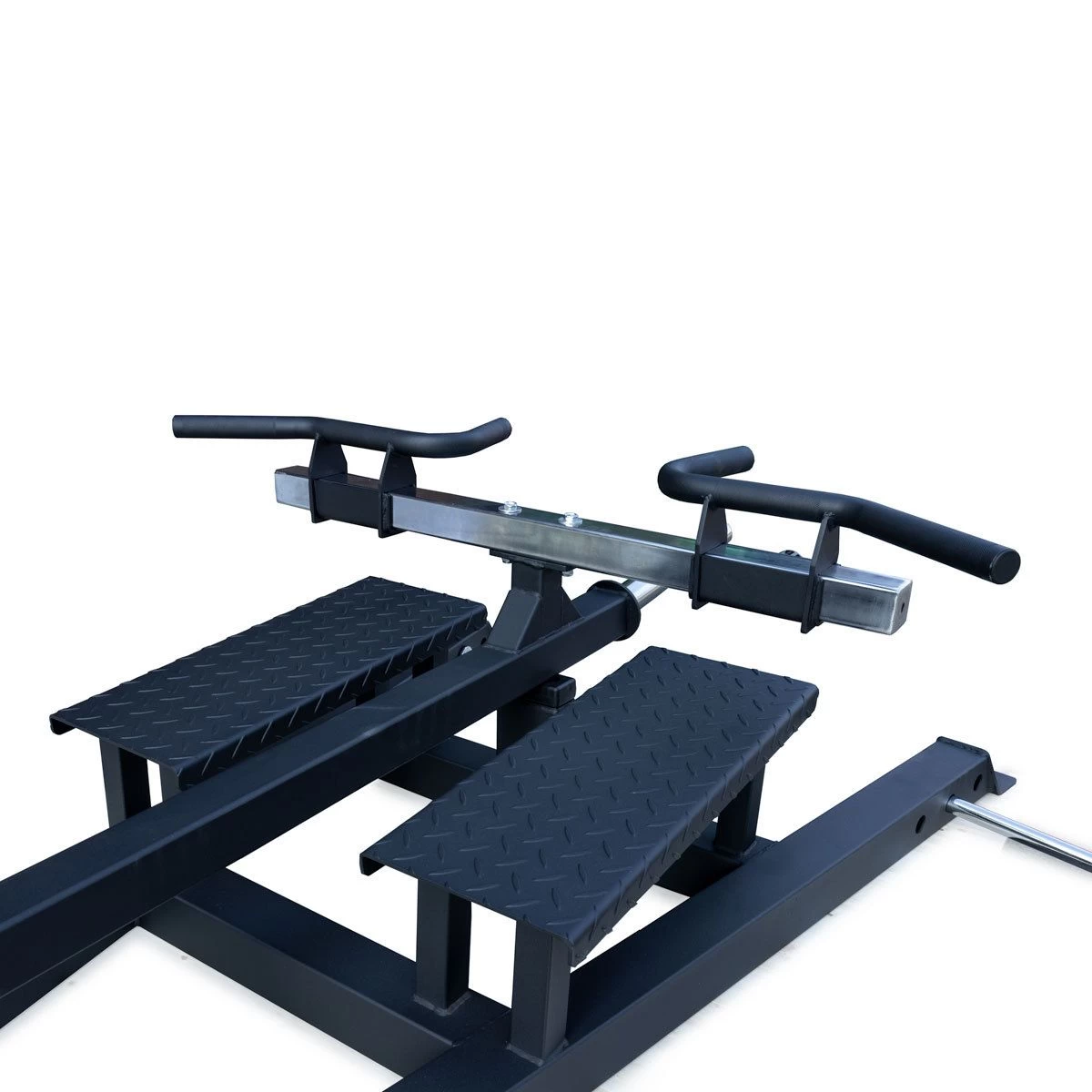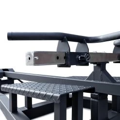 Rudern in all seinen Variationen ist ein Grundübung, wenn es nicht nur darum geht, einen breiten Rücken aufzubauen, sondern vor allem einen starken Rücken, der den unterschiedlichen Belastungen im Kraftsport gewachsen ist. Diese Übung zielt nicht nur auf den oberen Rücken und den Latissimus ab, sondern trainiert auch den Bizeps und die Schultern. Diese T-Bar Row Maschine ähnelt dem Landminen-Setup, bei dem es kein Brustpolster gibt, so dass du bei der Ausführung der Übung die gesamte Stabilisierungsarbeit leisten musst. Beladen wird die Rudermaschine mit Hantelscheiben. Um die Übung sicher auszuführen, hat das Gerät diamantbeschichtete Fußplatten und gerändelte Griffbereiche. Es gibt drei verschiedene Griffpositionen, und die Griffbreite lässt. Sie hat eine beladbare Scheibenaufnahme von 37,5cm und einen Durchmesser von 50mm. An den vorderen Füßen dieser Maschine sind Löcher für Stifte, damit du Übungsvariationen mit Bändern einfach und sicher in dein Training einbauen kannst.